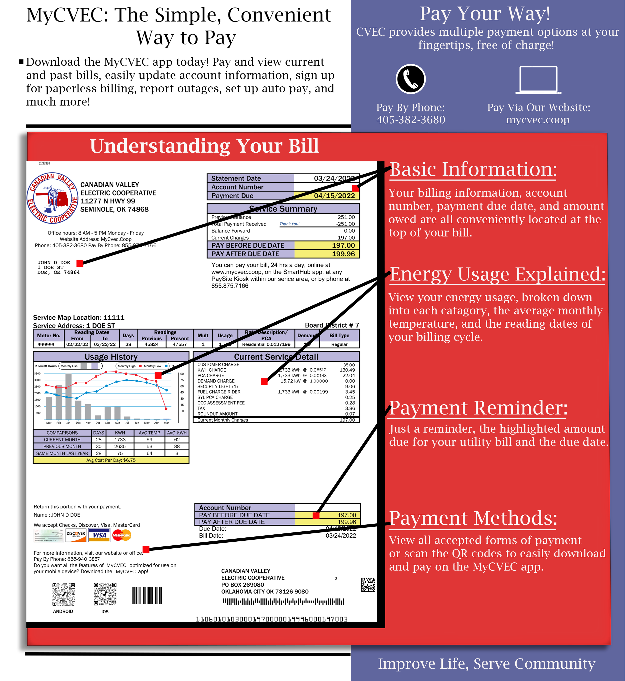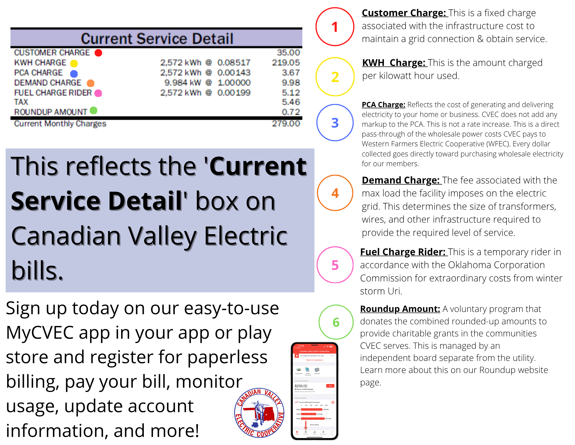Canadian Valley Electric Cooperative is committed to transparency in billing. Therefore, we do not bundle all charges into a single line item as many utilities do.